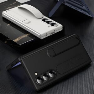 Samsung Galaxy Z Fold Protective Cover ? Experience top-notch protection and elegance for your premium device. This durable case is designed specifically for Samsung Galaxy Fold 6, ensuring a perfect fit and superior style. Made with high-quality materials, it shields your phone from drops, scratches, and daily wear. The integrated kickstand allows you to enjoy hands-free video calls, watching movies, and reading. A built-in wrist strap ring ensures a secure grip while adding comfort and convenience for long-term use.