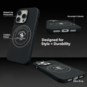 ACEDUN’s Santa Barbara Polo Club Carbon Fiber Finish Case for iPhone 16 Pro | MagSafe Compatible | Slim & Shockproof Soft Back Cover (TPU + Polycarbonate)