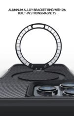 - Integrated Metal Ring Stand: Aluminum alloy kickstand with 26 built-in magnets for seamless hands-free usage and compatibility with magnetic wireless chargers.