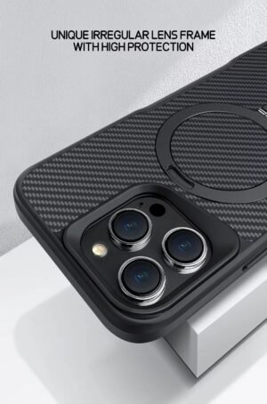 Enhance your phone’s style and functionality with this premium carbon fiber texture magnetic case. Built with precision and luxury, it offers ultimate protection and versatility with features like: