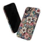 - Protect your iPhone 15 in style with the Floral Case. Featuring a stunning, intricate floral design, this rigid polycarbonate case offers a sleek feel and a perfect fit with easy access to all buttons.