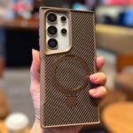Luxury Carbon Fiber Magnetic Kickstand Case for Samsung S23 Ultra & S24 Ultra- Gold