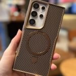 Elevate the look and functionality of your Samsung S23 Ultra or S24 Ultra with the Premium Carbon Fiber Magnetic Kickstand Case. This case features a sophisticated carbon fiber texture and an integrated MagSafe-compatible magnetic ring holder, offering both style and convenience. The foldable kickstand allows for hands-free viewing, making it ideal for streaming, video calls, or multitasking. Designed with precision cutouts, it ensures full compatibility with all ports, buttons, and cameras of the S23 and S24 Ultra models.