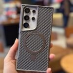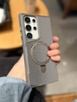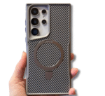 Luxury Carbon Fiber Magnetic Kickstand Case for Samsung S23 Ultra & S24 Ultra- Grey